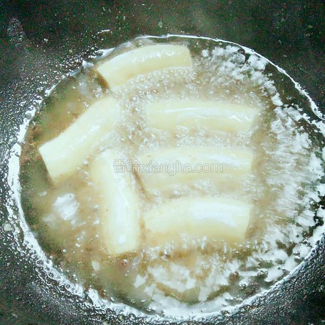 5.不沾油锅中放入少许油,油热后放入香蕉(我没有那种锅,所以油放的比较多。)