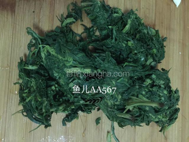 1.熟柳蒿芽(春天采摘的柳蒿芽,水焯之后冷冻保存的)解冻。