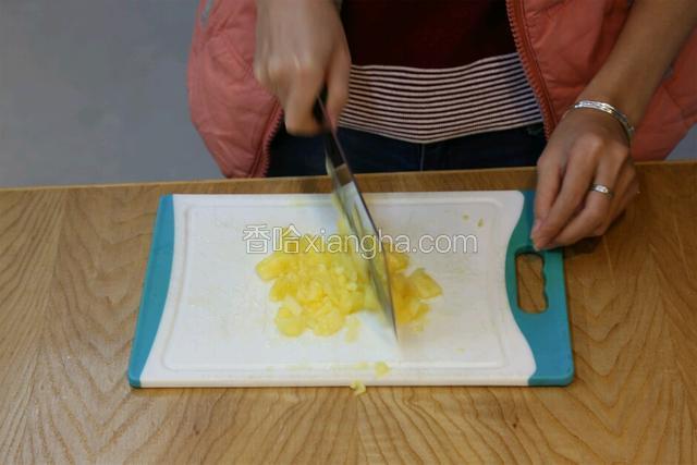 4.挤干的菠萝粒用刀背剁成蓉
