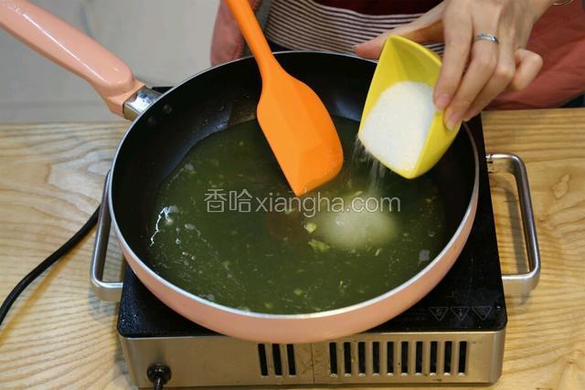 5.锅中倒入菠萝汁,麦芽糖,一起熬煮至融化