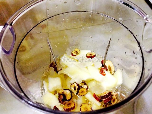 1.苹果去皮切块放入,我没用滤网,想喝细腻的可以放上滤网