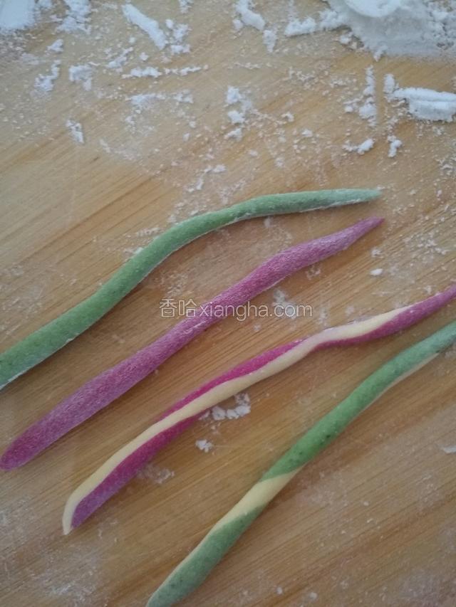 2.温水化开酵母砂糖,把500了面粉分别和成4种面团。醒发30分钟。