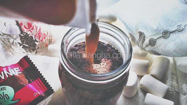 除了棉花糖裱一圈奶油 再撒一点肉桂粉装饰/或者直接撒一小撮肉桂粉也不错 我喜欢直接喝 想加珍珠 布丁的话就开始一起放在杯子里