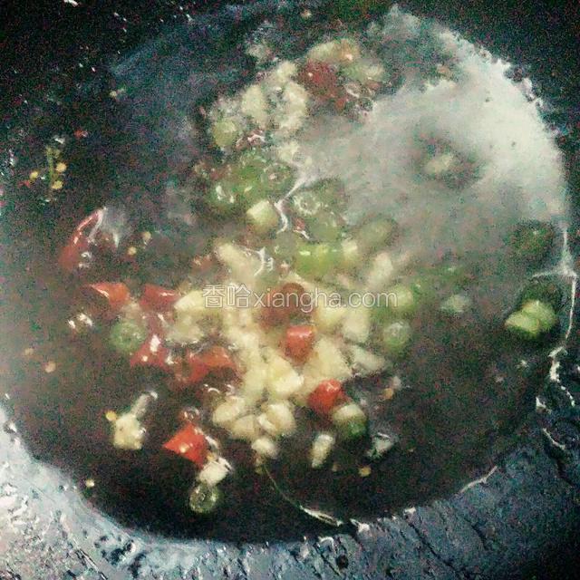 6.再放入葱花和蒜末爆香