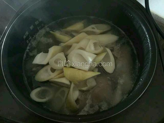 4.把猪蹄和咸肉放入电饭煲中加入适量的清水