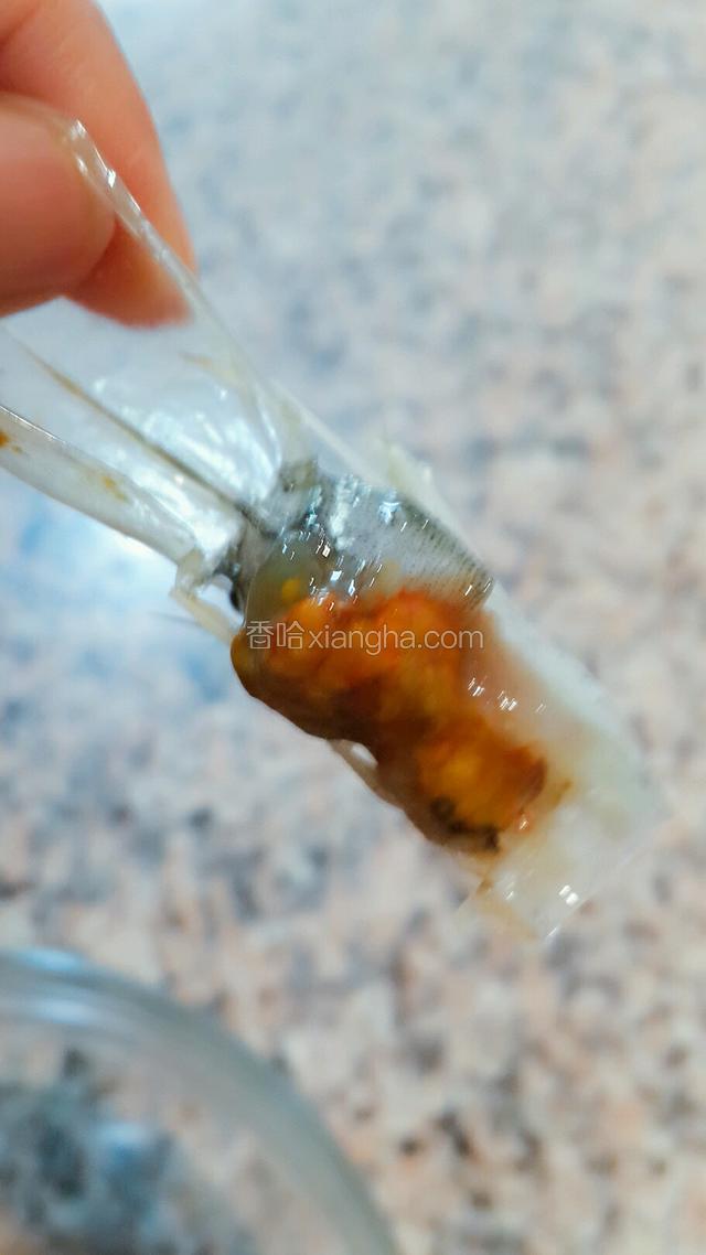 4.取出的虾脑可以用料理机打细腻,今天不想刷料理机,所以没打。如果你是个勤劳的厨娘一定打一下,成品会不一样哦