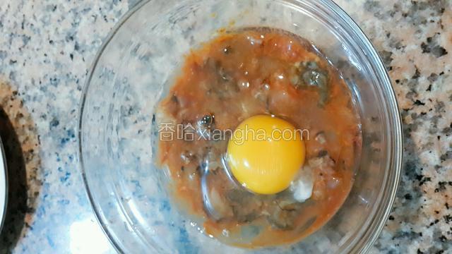 5.取出的虾脑太少了,打个蛋充数吧。原则上不加蛋,如果虾脑足够多就不加蛋,会更鲜一些。加适量盐搅匀,稍咸一些,后面可配生菜一起吃