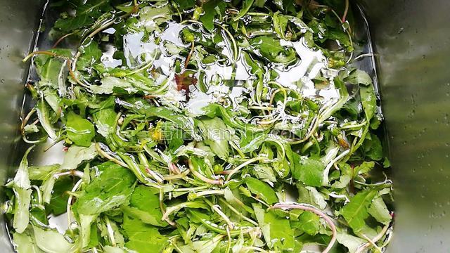 1.嫩蒲公英去除黄叶,放水里清洗干净。