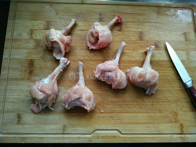 1.像图片那样将鸡翅根骨肉分离,底下不要切断,皮不要切破。