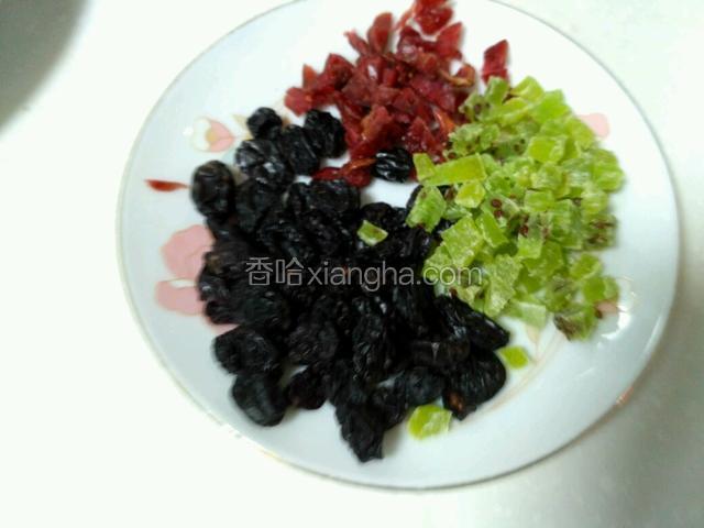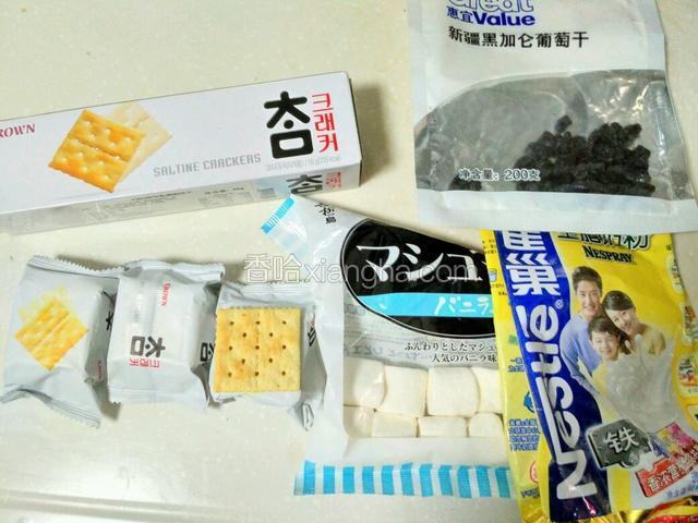3.奶粉,棉花糖,黄油。果干称重,我这个分量不多,成品十块左右。要多做点你们可以翻倍做。