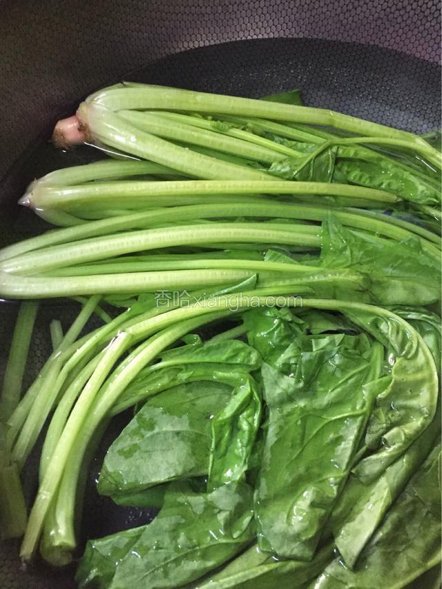 3.锅中烧开水 水开后关火 将菠菜放入锅中烫至断生