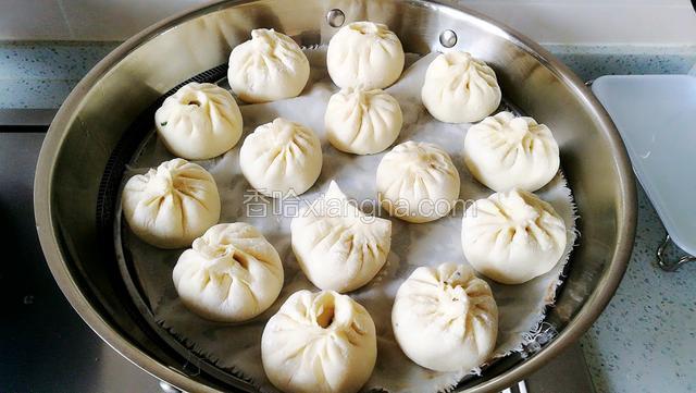 6.面团体积比开始的两倍大,用手摁一下不回缩就可以了。(步骤忘了拍)发好的面,放案板上多揉一会,刀一切为二。