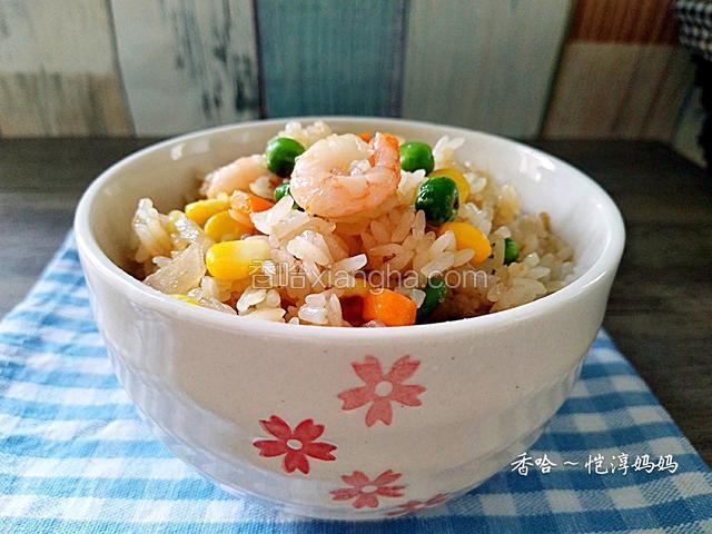 5.陆续放入甜豆,玉米粒,胡萝卜翻炒两下