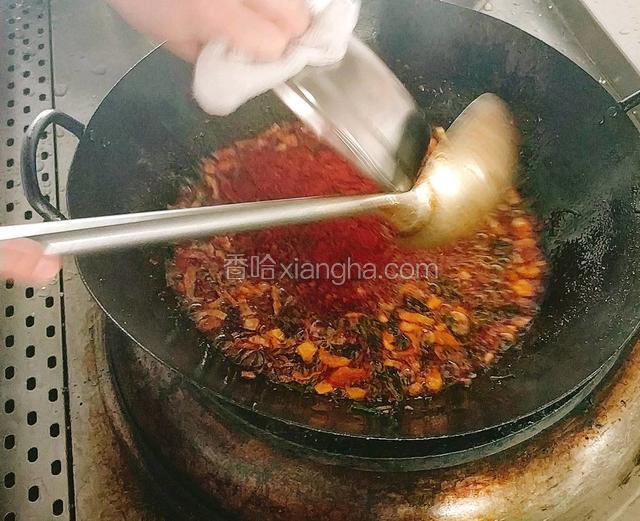 1.香菜,洋葱切碎,葱姜蒜切片。辣椒面待用。
