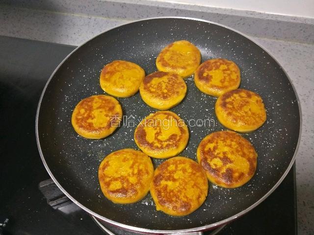 6.两手挤压剂子成圆饼,锅底刷油,依次碼入