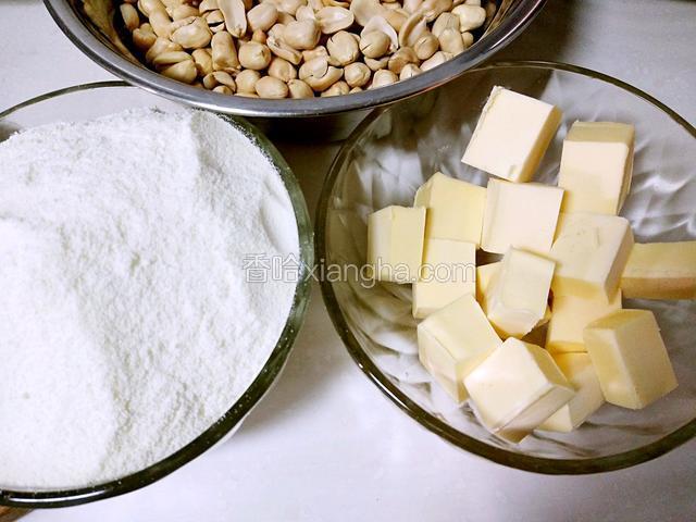 3.我是把花生泡水剥去红皮后再烤的,也可以烤好再用擀面杖擀一擀,吹风机吹掉花生皮就好(可参考我的菜谱:烤花生米)